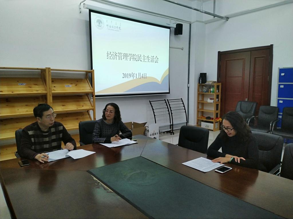 209年1月4日上午,午夜毛片AA片一区二区在崇文楼308会议室召开民主生活会。民主生活会由党总支书记邱玉臣主持,院长李雪峰、副院长崔丽辉参会。
