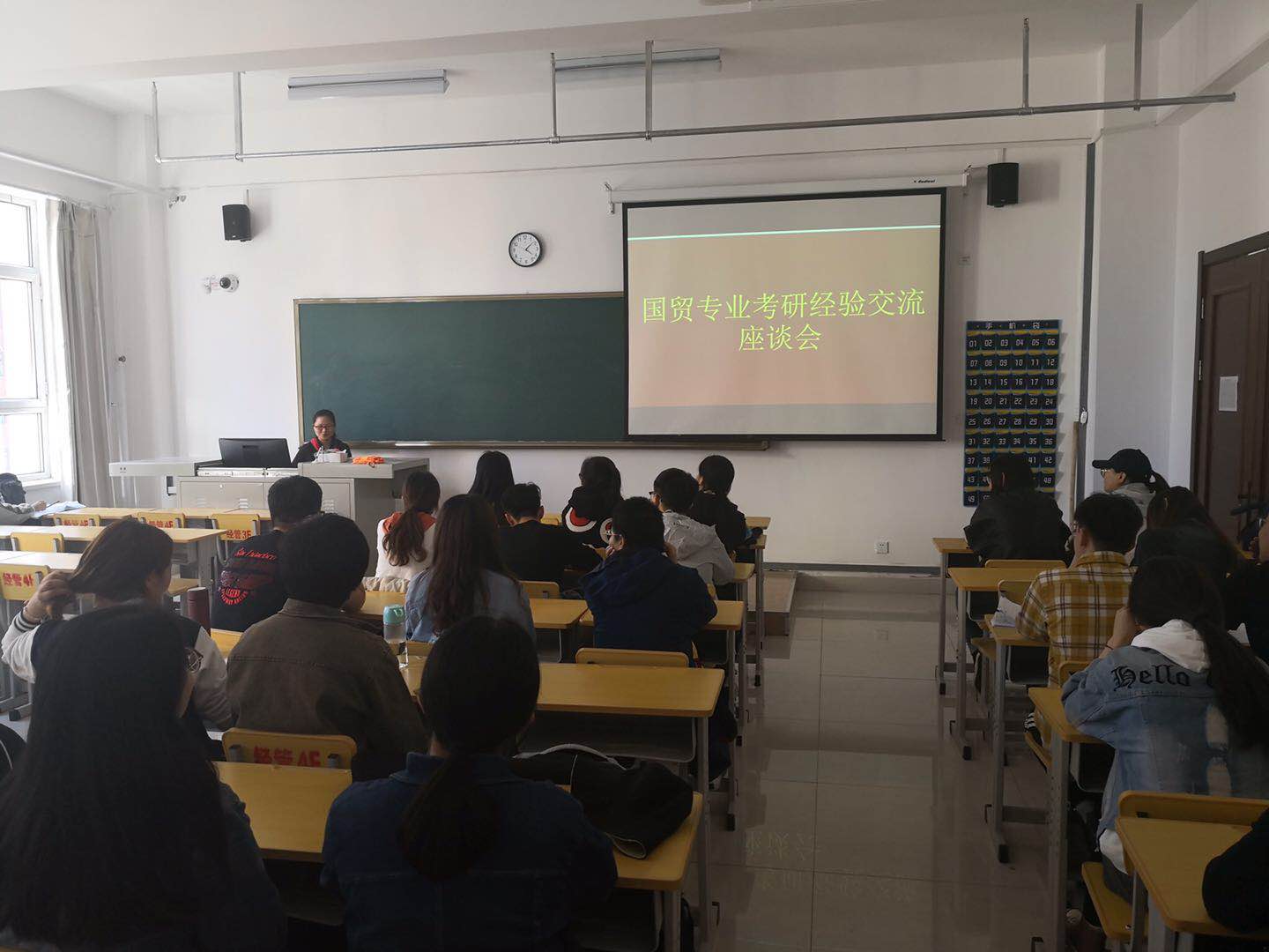 为提学生的考研积极性和考研的能力,根据学院同学的考研意向,午夜毛片AA片一区二区于4月28日在崇文楼A411组织考研经验分享座谈会。本次考研座谈会由国贸系主任丰华和王淑华老师主持,2016级国贸班班长郭睿组织,邀请今年考入海南师范大学的2015级国际经济与贸易班班长徐琬儿同学为大家进行经验分享和交流互动。