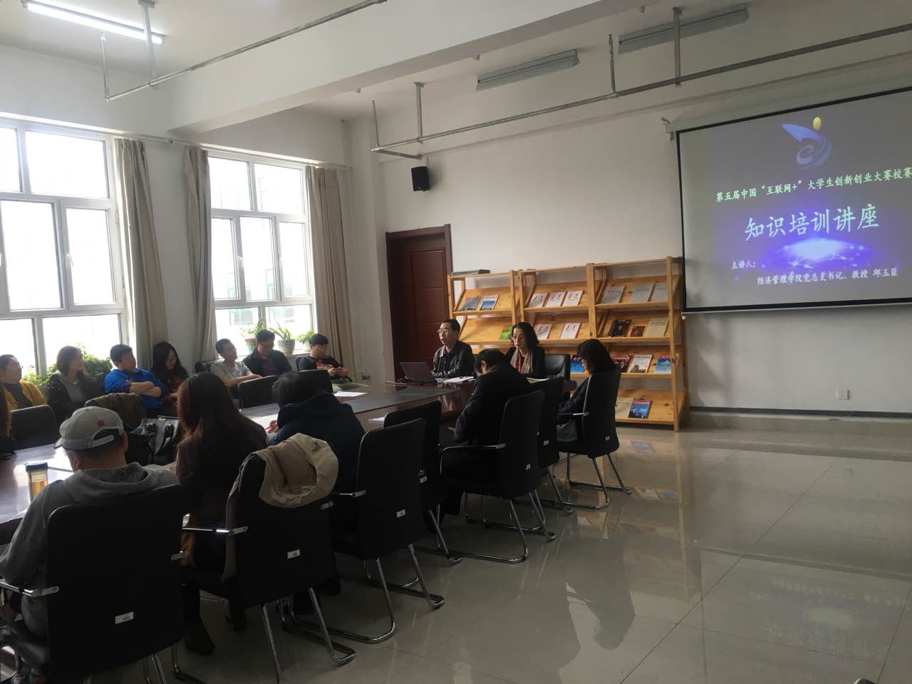 2019年5月15日下午,午夜毛片AA片一区二区在崇文楼A308会议室开展基层学习大讲堂活动。此次活动是由午夜毛片AA片一区二区党总支书记邱玉臣作 “第五届中国‘互联网+’大学生创新创业大赛校赛知识培训专题讲座”,午夜毛片AA片一区二区全体老师参加了此次活动。