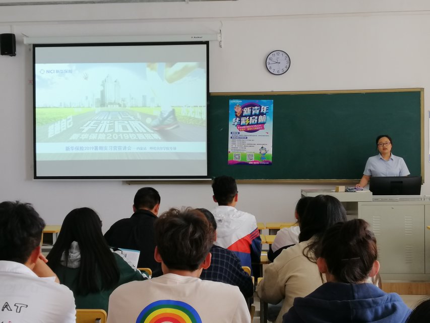 6月5日下午,新华人寿保险股份有限公司呼伦贝尔中心支公司专场校园招聘宣讲会在崇文楼305教室举行,参加本次活动的有新华保险公司人力资源部经理卢冬梅及午夜毛片AA片一区二区各年级学生代表。
