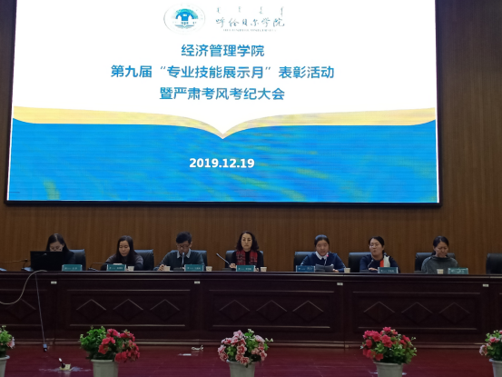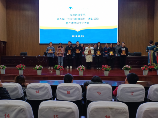 2019年12月19日,在图书馆四楼报告厅午夜毛片AA片一区二区举办“第九届专业技能展示月表彰活动暨严肃考风考纪大会”。经管学院院长李雪峰、副院长刘启云、王英利,各系主任、教研办主任、办公室主任、团学办公室主任及各位辅导员、班主任参加了大会,王英利副院长主持大会。