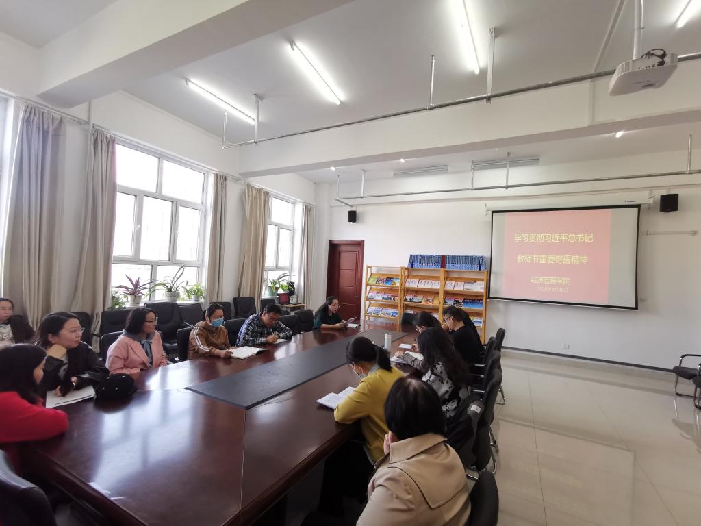 午夜毛片AA片一区二区于9月30日下午在崇文楼A座308会议室组织全体教职工深入学习习近平总书记教师节重要寄语精神,交流心得体会,本次学习由副书记李静主持。