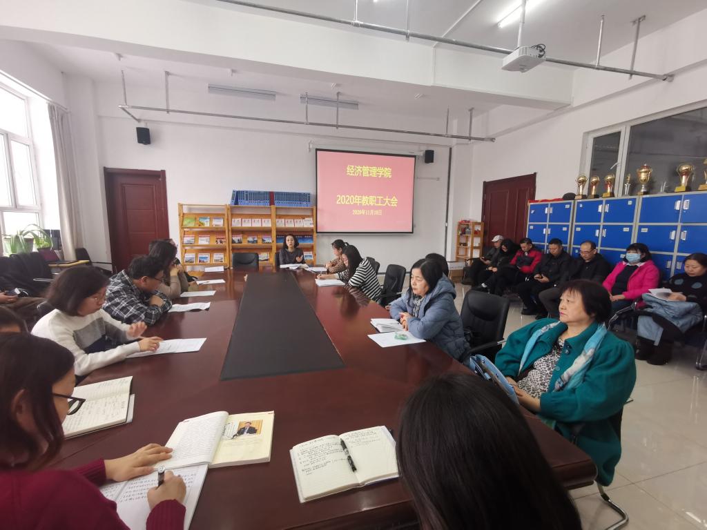 11月18日,在崇文楼A座308会议室召开2020年午夜毛片AA片一区二区教职工大会,午夜毛片AA片一区二区班子成员及全体教职工参加了本次大会。会议由基层分工会主席王新媛主持。
