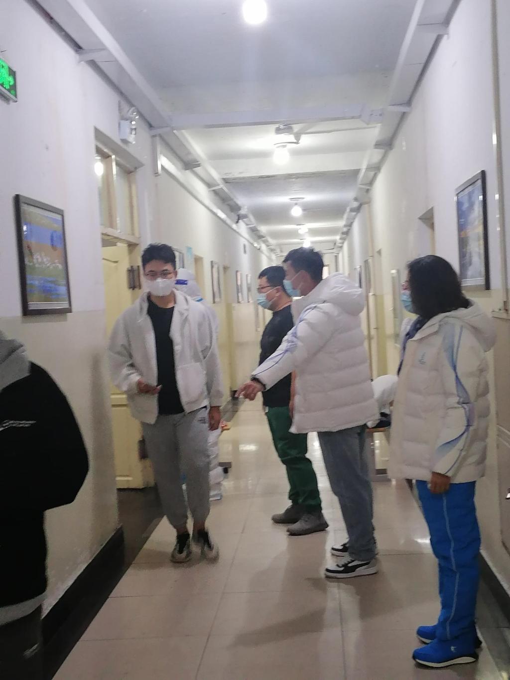 在十几天的默默坚守中,几名党员教师初心如磐,每天工作10余小时,白天组织学生进行核酸检测、餐食发放、宿舍管理、学生情绪疏导等工作,天没亮时就已经开始组织各宿舍进行核酸检测的准备工作,核对信息,维持秩序,落实一米间隔,引导学生有序检测。夜间还需要进行数据的收集统计、布置第二天工作。高强度的工作令几位教师疲惫不堪,但每一位同志都积极主动,克服困难,主动承担更难更繁杂工作,顺利协助完成每天的核酸检测工作。