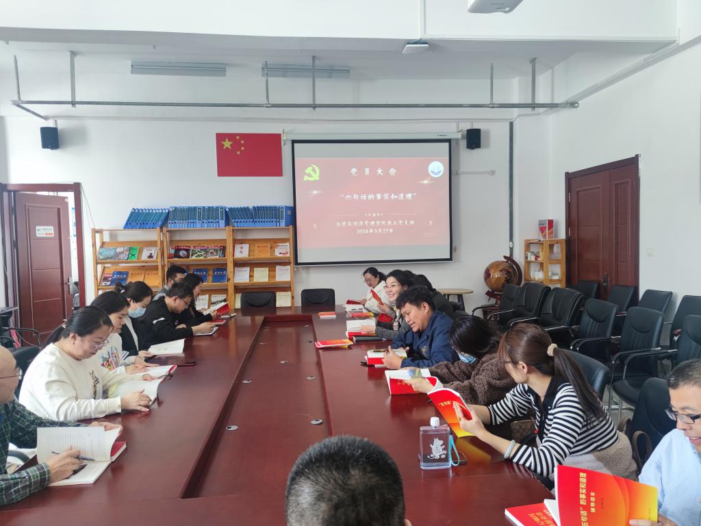 为更好地巩固拓展主题教育成果,推动“感党恩、听党话、跟党走”群众教育实践活动走深走实,法学与午夜毛片AA片一区二区教工党支部于3月27日下午,在崇文楼A308会议室开展“六句话的事实和道理”专题学习活动,全体教职工党员参加。