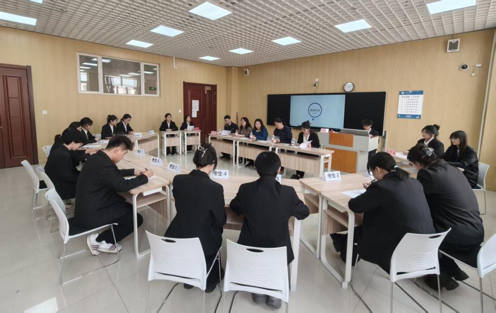 此次复赛采用无领导小组面试与开放式问答相结合的形式。大赛邀请浦发银行呼伦贝尔分行会计主管王丹、综合柜员嘉豪、金鑫化工有限公司会计主管张振宇、呼伦贝尔游牧之旅国际旅行社有限公司副总经理王三军、呼伦贝尔市龙凤新天地购物广场楼层经理位科慧,学院党总支书记李静、副书记董慧及任课教师担任评委。