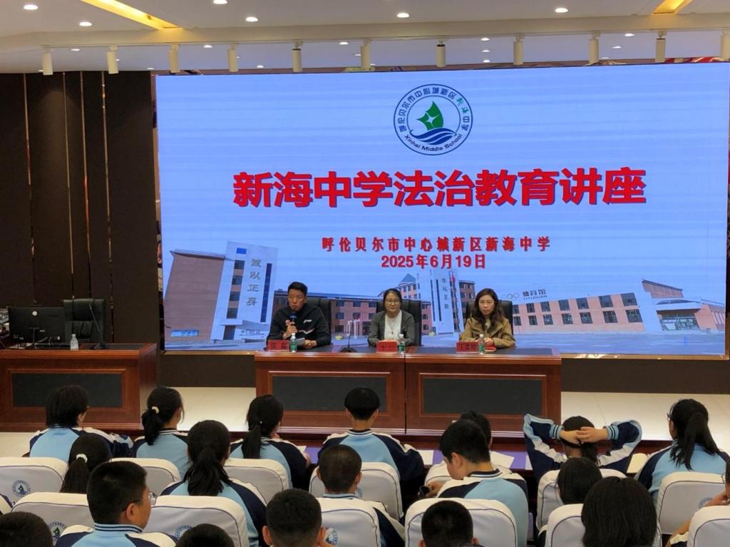 签约仪式上,双方就合作细节进行了深入交流,明确了合作期内的具体内容。新海中学校长为学院教师李喆和额尔敦巴根颁发了法律顾问的聘书,并创新建立了联席会议制度和联络人机制,确保合作项目落地见效。此前,6月19日下午,学院教师、内蒙古援音律师事务所律师李喆已受邀为新海中学全校师生及家长开展"民法典进校园"普法讲座,采用"线下+线上"相结合的形式,带来了一堂生动的法治教育课。