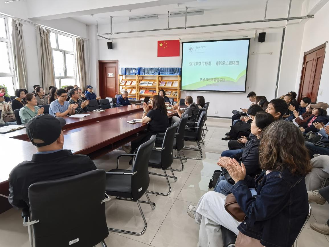 为庆祝第41个教师节,更好的激励教师能够以教育家精神铸魂强师,谱写教育强国建设华章,9月10日下午,法学与午夜毛片AA片一区二区党总支开展“银龄秉烛传师道,青衿承志铸强国”主题党日,邀请学校退休教师包玉山同志围绕“传承北疆文化,弘扬教育家精神,回顾戍边教师奋进历程”主题作专题讲座,学院全体教职工参加学习。