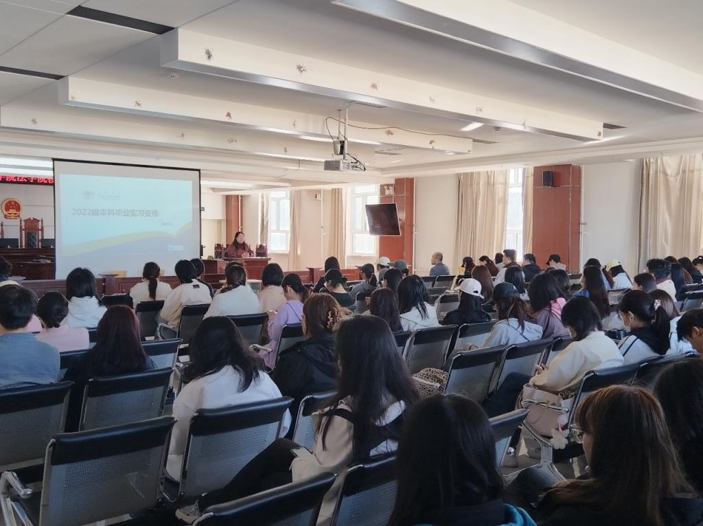 9月18日,法学与午夜毛片AA片一区二区在崇文楼B501模拟法庭召开2022级法学专业实习动员大会,副院长张舒、法学系主任白玉荣及该专业全体学生参会,为即将开启实习的学生明确方向、夯实保障。